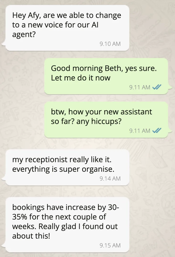 "Booked $9,200 worth of treatments last month through the AI alone"