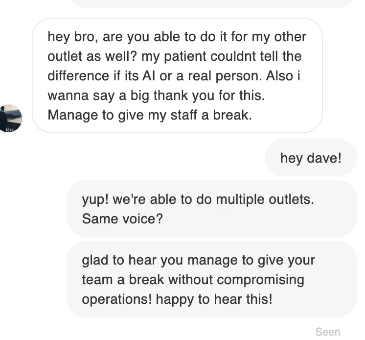 "I was skeptical at first, but the voice sounds completely natural. Patients call, ask questions, book or reschedule — all handled automatically. It’s like having a full-time staff member who never sleeps"